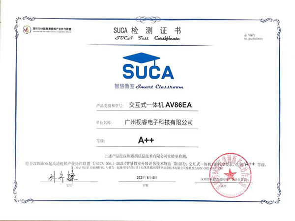 喜訊!希沃參與行業智慧教室標準擬訂,兩款交互式一體機獲SUCA聯盟“A++認證”