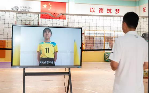 黃老師抵達俱樂部后,希沃在一體機上為黃老師播放了一段祝福小視頻。“感謝你每天從早到晚陪我們訓練”“我以前在二年級的時候經常看到哥哥姐姐們在球場上打排球,我也想為學校爭得名次,我每次想放棄的時候都是你鼓勵我”……北山小學排球隊的同學們紛紛給黃老師留言。黃老師表示,“我一直對他們嚴格要求,以為他們不會喜歡我。但那一刻,我就明白,只要我用心去教導,他們是能感受到的。”