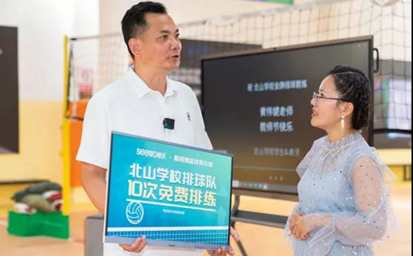 作為一名體育教師兼北山小學金牌排球教練,黃老師曾連續12年帶領北山小學女排奪得省賽冠軍,但北山小學的排球場是室外場地,遇上風雨天時,學校的排球訓練就不得不暫停。希沃得知困擾黃老師的難題后,決定為黃老師送上一份心意——為黃老師承包10次使用排球場的費用,讓黃老師在雨天也能帶著小朋友打排球。 按照任務卡的說明,黃老師乘坐廣汽傳祺的汽車前往“鑫翔德籃球俱樂部”,此次教師節主題活動中,希沃與廣汽傳祺為教師安排了專屬車輛。