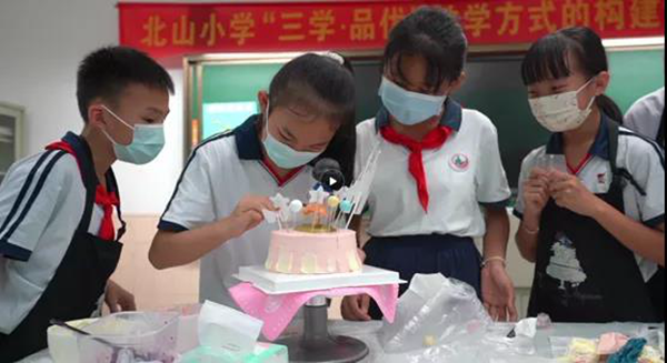 實際上,由于分管學科教學和德育行政兩部分的工作,鄧燕媚經常在凌晨才有時間去備課,北山小學的老師紛紛調侃她“不睡覺”。為了幫鄧老師放輕松,希沃邀請了鄧老師班上的5位學生,一起為鄧老師制作蛋糕。