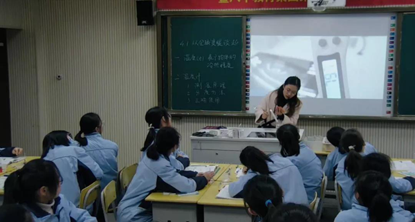 物理課上,徐老師利用希沃白板5手機(jī)端的攝像功能實(shí)時(shí)將實(shí)驗(yàn)過(guò)程及結(jié)果同步與大屏中,全班同學(xué)一起見(jiàn)證物體溫度的變化。