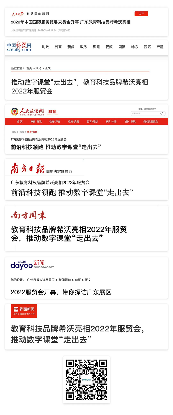 希沃本次參展更是獲得中央、省、市主流媒體及重要媒體的關(guān)注報(bào)道,包括人民日?qǐng)?bào)、科技日?qǐng)?bào)、人民政協(xié)網(wǎng)、南方日?qǐng)?bào)、南方周末、廣州日?qǐng)?bào)、界面新聞等。