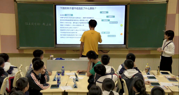 教師希沃白板及希沃易課堂使用熟練,技術支持下的實驗(如,手機、平板投屏、拍照上傳)快捷、高效、生動、有趣;情景引入、小組合作、探究、任務驅動、項目式、大單元等教學行式與方法在課堂中充分使用。
