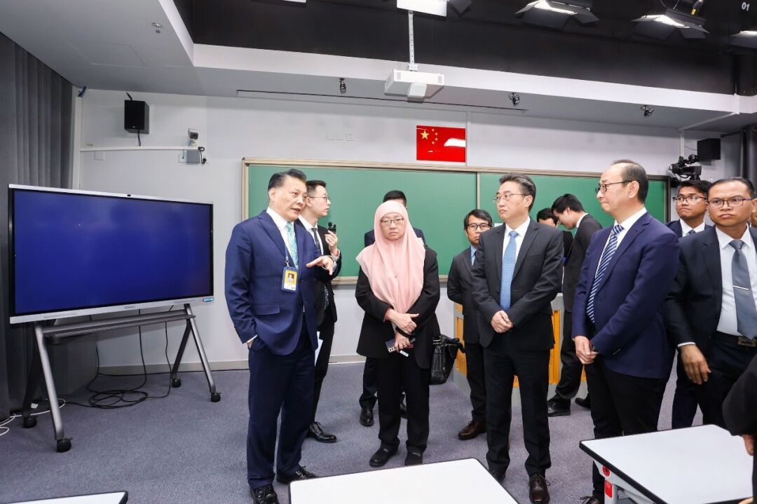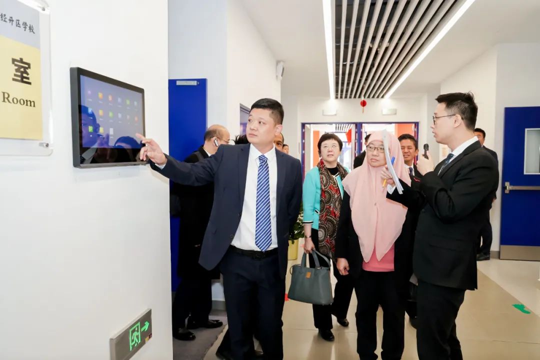 當天下午,東盟各國教育官員一行首先參訪北京市第二中學經開區(qū)學校,現(xiàn)場了解數(shù)字化在具體教學實踐中的應用。從智能監(jiān)控中心、遠程教室、化學實驗室等場景,到安裝了希沃交互智能平板、電子班牌、電子畫框等硬件的智慧教室,北京市第二中學經開區(qū)學校已經把數(shù)字技術成功在運用到了老師教學和學校運營中,使東盟各國教育官員對中國數(shù)字化、信息化的教育管理模式有了深切感受。