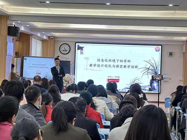 希沃杏壇導(dǎo)師牛家棟老師以《信息化環(huán)境下的學(xué)科教學(xué)設(shè)計(jì)優(yōu)化與課堂教學(xué)創(chuàng)新》為題進(jìn)行了內(nèi)容分享。他深入剖析了信息化環(huán)境下教學(xué)設(shè)計(jì)的理念和方法,將信息化技術(shù)應(yīng)用于課堂教學(xué)在豐富情境、增強(qiáng)互動(dòng)、深化理解、啟發(fā)思維方面的優(yōu)勢(shì)進(jìn)行講解呈現(xiàn),并展示了他如何通過把握“技術(shù)在教學(xué)中的最佳應(yīng)用點(diǎn)”讓“教學(xué)媒體的作用事半功倍”。