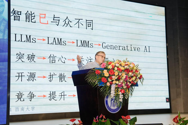 特邀專家報(bào)告環(huán)節(jié)由西南大學(xué)原副校長、未來學(xué)校與教師發(fā)展研究院院長陳時見和西南大學(xué)教師教育學(xué)院院長羅生全主持。福建師范大學(xué)副校長劉三女牙、西北師范大學(xué)郭紹青教授、視源股份未來教育集團(tuán)(希沃)常務(wù)副總裁、廣東省杏壇智慧教育創(chuàng)新研究院副院長張凌、北京航空航天大學(xué)熊璋教授分別作專題報(bào)告,精準(zhǔn)把握數(shù)字化及人工智能發(fā)展的背景下教育發(fā)展前沿理論,為學(xué)科教學(xué)提供前瞻性指導(dǎo)與參考。