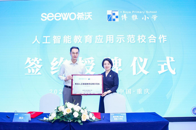 近日,在第83屆中國教育裝備展示會現(xiàn)場,希沃與重慶兩江新區(qū)博雅小學(xué)校(下稱:博雅小學(xué)校)進行了人工智能教育應(yīng)用示范校合作簽約授牌儀式,視源股份未來教育集團商用顯示事業(yè)部總經(jīng)理黃柏林、博雅小學(xué)校副校長林曉宇出席活動,開啟校企合作的新篇章。