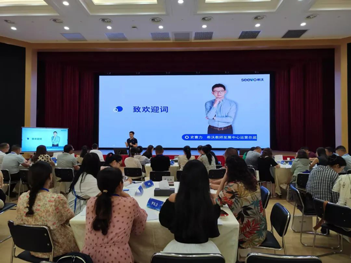 活動由希沃教師發展中心教師顧問王曦主持,希沃教師發展中心運營總監史曹力代表希沃在開場中向遠道而來的老師們表示了歡迎與感謝。在AI技術日新月異的今天,課堂教學與教研模式正經歷著數字化深刻變革,教師如何緊跟時代步伐,通過專業學習促進數字化素養提升,已經成為備受關注的話題。該活動旨在通過AI應用專題工作坊培訓,提高教師的數字技術應用能力、信息素養和數據分析能力、創新思維和教學設計五大能力,并掌握生成式AI應用技能。