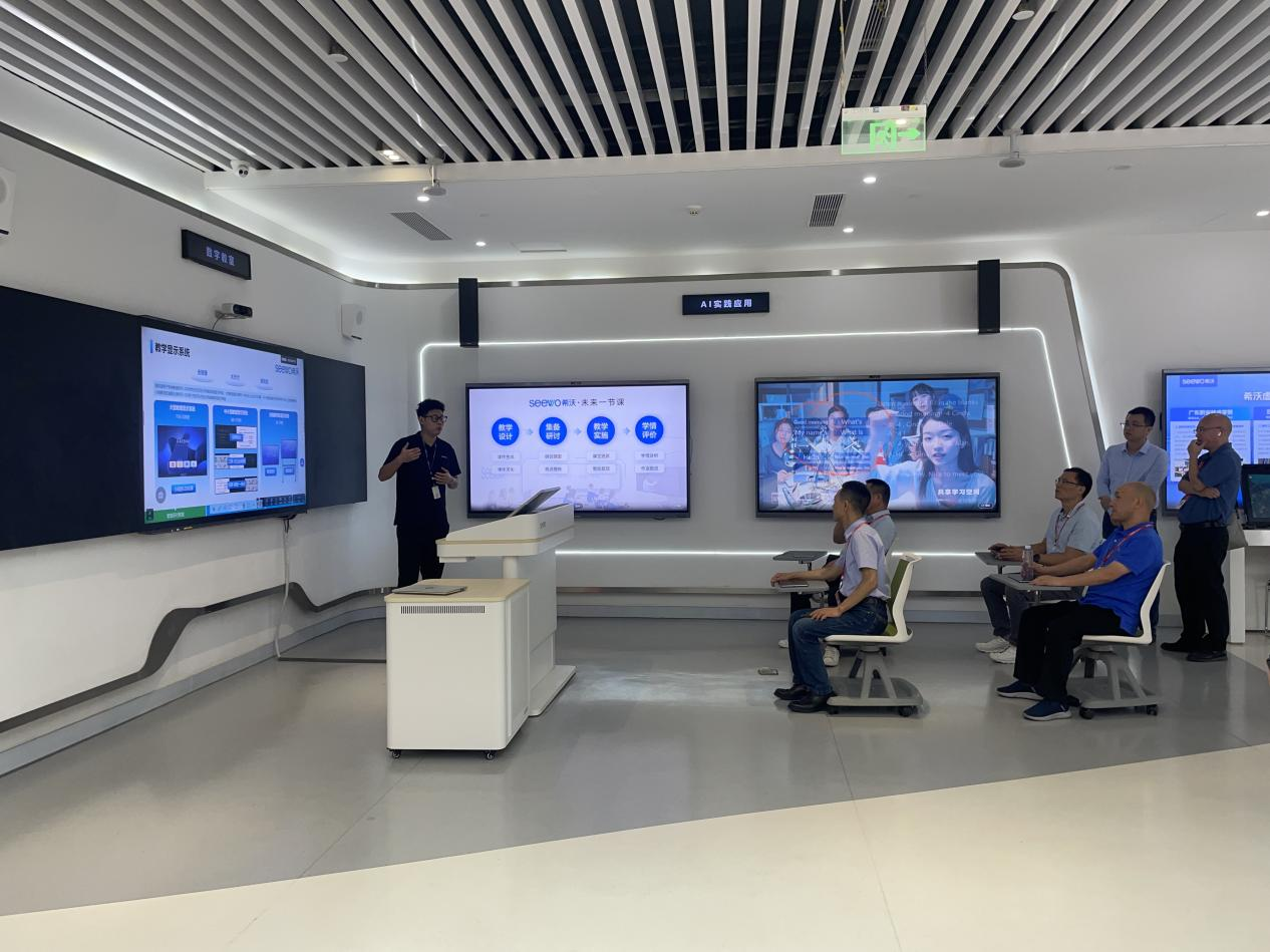 參訪伊始,希沃副總裁黃逸濤對廣東職業教育信息化研究會領導一行的到來表示熱烈歡迎,并向其詳細介紹了希沃的整體發展歷程、業務板塊、產品布局等相關內容,全面展現了希沃深耕教育15年的企業實力。參觀人員與希沃相關負責人親切交談,并在希沃展廳陸續體驗了希沃智慧教室解決方案,虛擬仿真實訓終端,希沃機房解決方案等多款數字化教育裝備,多維度領略了智能力量帶給教育產業的蓬勃生機。