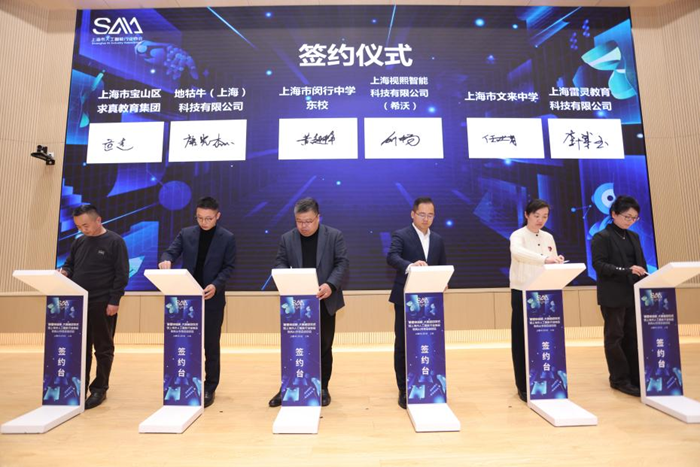 會上,12家人工智能企業(yè)與教育場景單位達(dá)成供需簽約,其中上海視熙智能科技有限公司作為人工智能企業(yè)與教育場景單位上海市閔行中學(xué)東校達(dá)成供需簽約。