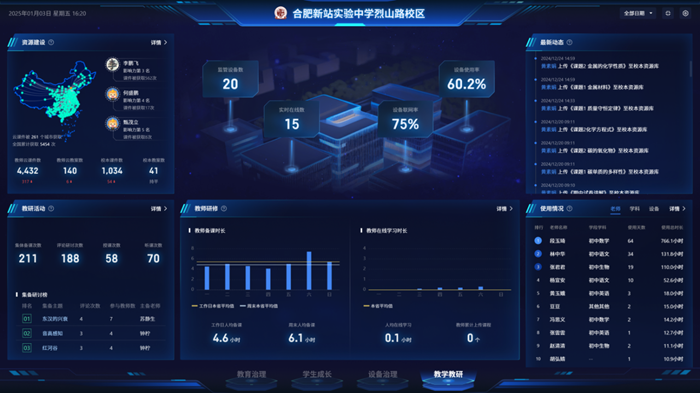作為一所年輕的學校,學校教師專業的成長發展直接決定了學校發展的高度。在傳統的教學管理中,由于學校教師人數較多,學校又面臨著全校教師隊伍發展不清晰,缺少數據匯總與數據支撐,缺乏發展指導建議等難題,為進一步實現教師專業發展全過程的精準化管理,和希沃魔方合作搭建了教師的教研平臺。通過建設校級教學教研管理平臺,實施校本資源和教研質量的管理一體化,提升效率和質量成果的可視化,幫助教師來客觀的評估自己的教育教學成果,為學校的教學改革來提供支撐。