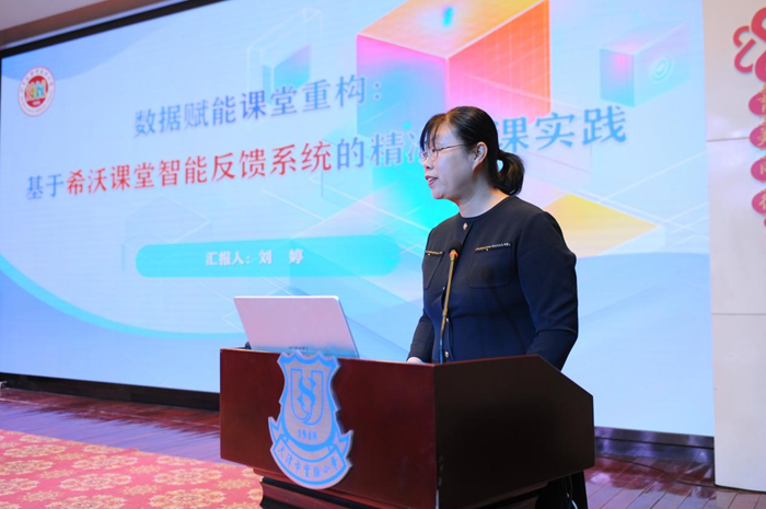 新華南路小學的劉婷主任則以《數(shù)據(jù)賦能課堂重構(gòu):基于希沃課堂智能反饋系統(tǒng)的精準研課實踐》為題,分享了基于實證反饋的教學研究成果。