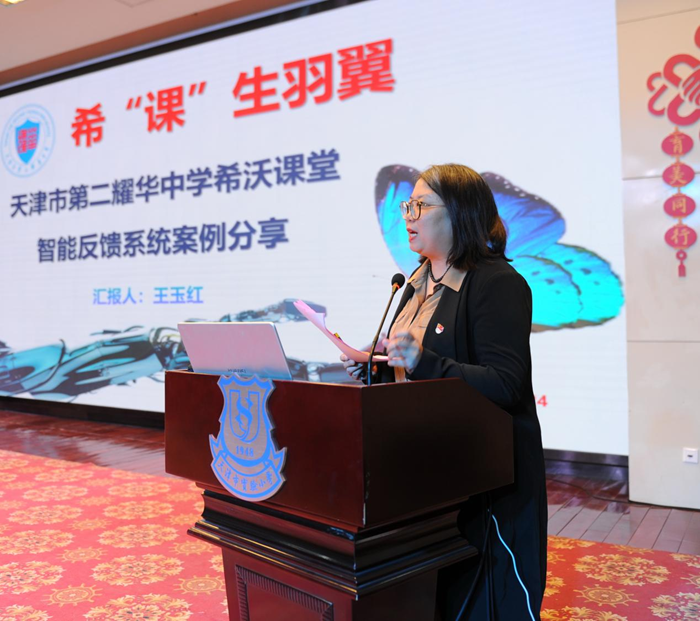 此外,第二耀華中學的王玉紅主任和漢陽道中學的高媛媛老師,分別圍繞《天津市第二耀華中學希沃課堂智能反饋系統(tǒng)案例分享》、《課堂智能分析數(shù)據(jù)的應用—以物理組為例》,全面展示了希沃課堂智能反饋系統(tǒng)的魅力——包括其如何幫助教師實現(xiàn)從經(jīng)驗教學向循證教學的轉(zhuǎn)變、如何實現(xiàn)校本教研的高效融合。