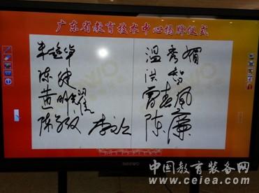 廣東省教育技術(shù)中心由原廣東省教育信息中心和原廣東省電化教育館合并而成,主要職能是參與制訂、實(shí)施全省教育信息化發(fā)展規(guī)劃,組織開展相關(guān)研究和培訓(xùn);指導(dǎo)全省教育網(wǎng)站網(wǎng)校、信息化設(shè)施的建設(shè)。在揭牌儀式上,彭紅光主任代表中心發(fā)表了熱情洋溢的講話,表明了在教育信息化深入的背景下,成立教育技術(shù)中心的意義和其未來肩負(fù)的使命。揭牌儀式后,各位代表集體合影并在朱超華副廳長(zhǎng)的帶領(lǐng)下紛紛駐足為本次會(huì)議特別提供的希沃交互智能平板前進(jìn)行簽名留念,希沃交互智能平板的簽名軟件將各位代表的墨寶紛紛保存下來,記錄廣東省教育信息化發(fā)展進(jìn)程。