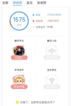 班級優化大師的使用,讓老師們感受到了新技術帶來的甜頭兒。操作便捷,對學生作業可以進行實時評價,提高了作業批閱的實效性。饒有興趣的隨機點名選擇學生回答問題,加強了學生聽課的自覺性,激發了他們的學習興趣。在與家長們的信息溝通中,班級優化大師也起到了非常好的橋梁作用。