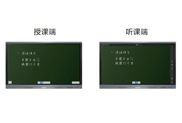 為助力提升專遞課堂質量,促進學生有效學習,高質量班班通解決方案支持通過希沃遠程互動助手,實現高效有趣的課堂互動。在課堂教學中,老師可以借助希沃遠程互動助手,輕松實現異地板書同步、多課堂競賽、遠程拍照上傳分享學習成果等,讓兩地學生仿若置身同一教室共同學習,營造了良好的課堂氛圍,讓學生成為課堂的主體,主動積極參與課堂互動,從而提高課堂教學實效。