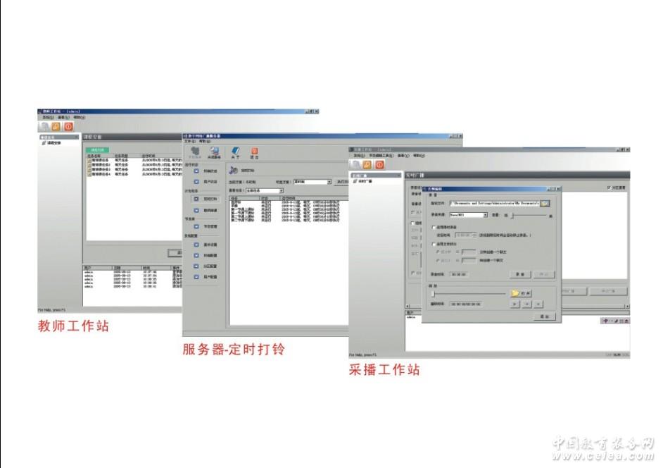 ■包括自動打鈴、課間音樂播放、校領(lǐng)導(dǎo)講話、播送通知和轉(zhuǎn)播電臺節(jié)目等。