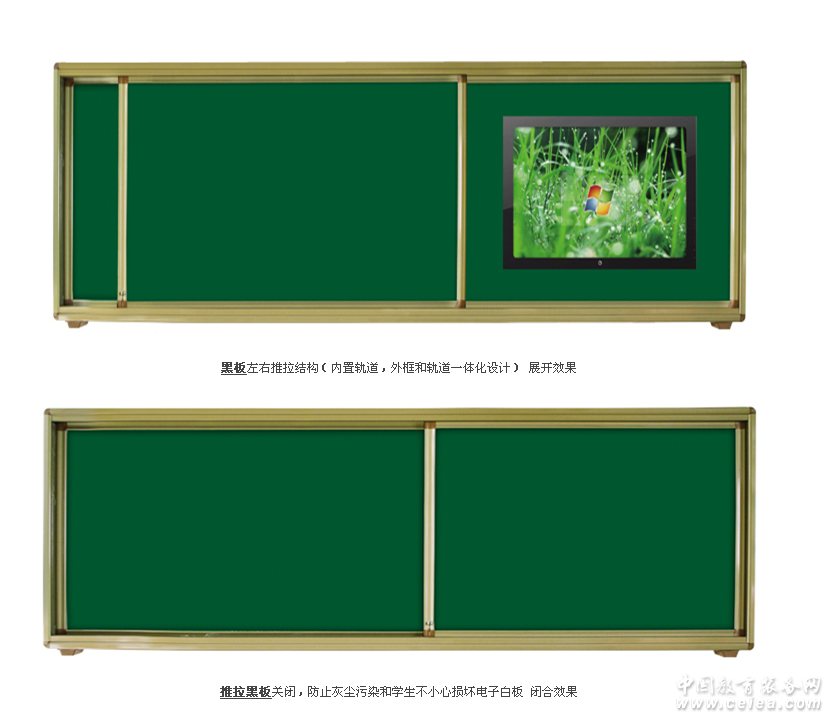 綠板板面為墨綠色,用粉筆書寫,不刺激人的眼睛,有利于視力的保護;白板板面為白色,多用各種水性彩筆書寫. 彩涂鋼板板面采用涂以耐磨涂層的優質合金鋼板,板面厚度多為0.3mm-0.4mm,耐磨,不脫落,不褪色,經久耐用.書寫手感好,字跡清晰,易寫,易擦試.粉塵少;新型材料復合板是由進口高分子合金顆粒與環氧樹脂經一次性壓制成型表面不做任何處理,板面厚度為3mm,書寫流暢,字跡清晰永久性不打滑,不反光,擦后無殘留,可視效果極佳,經測試使用壽命達15年以上,此產品由藍貝思特獨家研制開發. 平面板板面平整光滑,弧面板板面為曲面,防止反光,能使坐在各角落的學生也能看清板書字跡,適用于較大的教室。 支架活動板將黑板配以各種支架,移動方便,用途廣。推拉板升降板,可沿特定軌道多向移動,書寫方便,利于觀看. 磁性黑板在黑板內部襯以磁條磁棒,或在表面附著磁性顆粒。使用時可用磁釘、磁塊等固定小型教學工具或圖片方便展示. 多功能組合板,交互式電子白板,帶幕投影板,五線譜音樂黑板,是傳統意義上的黑板與現代科技的結合,傳統黑板,配以電子白板,投影機,電腦,以及相應的教學軟件、硬件完美的補充了傳統教學上的缺陷,讓現代化教學技術真正走進教室,為當今教育事業發展的必然趨勢.