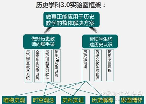 周建宇認為,歷史教學是一個復雜的整體的教學系統,歷史學科3.0實驗室充分利用數字化多媒體組合,緊扣歷史教學目標、優化學科教學過程、強化歷史德育意義,打破陳舊的教學模式,徹底改變缺乏知識實物載體與多媒體呈現的現狀,科學地、生動地展示人類社會歷史發展的基本過程,為啟發式、探究式、討論式、參與式教學創造了條件。