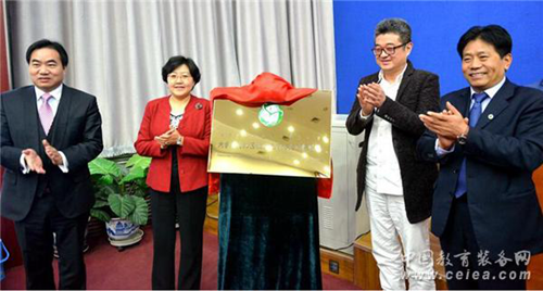中教啟星總裁周建宇(左一)、內蒙古教育廳副廳長楊劼、中廣國際董事長王文斌、內師大校長云國宏為內蒙古自治區(qū)教師教育協(xié)同創(chuàng)新聯(lián)盟揭牌