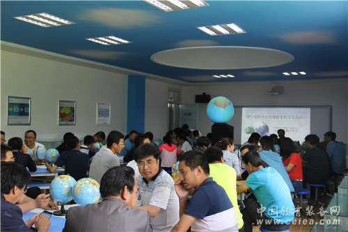 培訓(xùn)現(xiàn)場(chǎng),中教啟星培訓(xùn)講師蒲生花就數(shù)字星球系統(tǒng)和交互地圖教學(xué)系統(tǒng)的硬件維護(hù)、軟件使用、課程資源調(diào)用等等作了詳細(xì)講解和演示操作。參加培訓(xùn)的教師們?cè)谄牙蠋煹闹笇?dǎo)下動(dòng)手操作、制作課件,深度體會(huì)數(shù)字星球和交互地圖在教學(xué)中應(yīng)用的特點(diǎn),熟練掌握地理教室的各類軟硬件設(shè)備的使用。教師們普遍對(duì)數(shù)字星球和交互地圖相關(guān)資源的使用權(quán)限問題表現(xiàn)出較大的疑惑,對(duì)此,蒲老師明確指出,數(shù)字星球和交互地圖是開放的平臺(tái),其中的資源都供教師開放使用,教師也可以自助上傳和編輯各類資源,從而為教師們開展數(shù)字化地理教學(xué)提供強(qiáng)大的技術(shù)支持和資源支持。