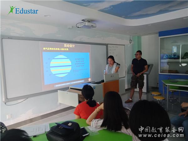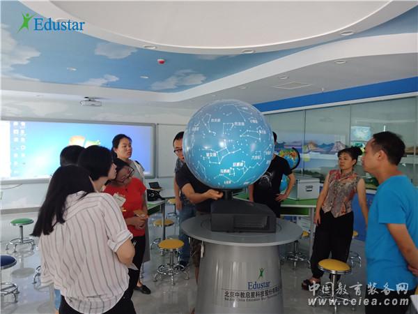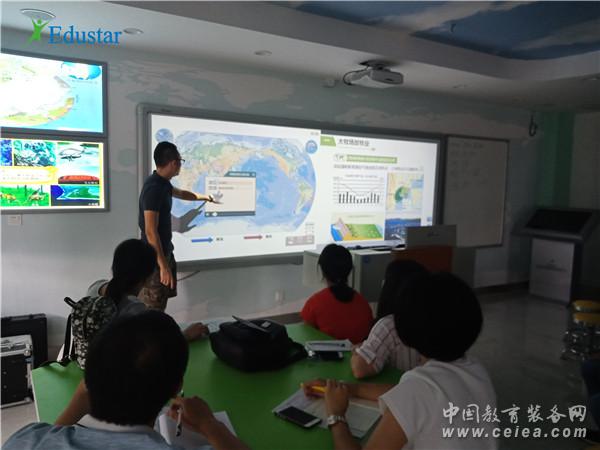 在深度體驗(yàn)專用教室各類設(shè)備的教學(xué)應(yīng)用特點(diǎn)、熟練掌握軟硬件操作使用方法之后,老師們被中教啟星數(shù)字星球系統(tǒng)、交互教學(xué)系統(tǒng)等現(xiàn)代教育裝備強(qiáng)大的教學(xué)功能折服。其中,數(shù)字星球系統(tǒng)能瞬間將圖片、視頻、動(dòng)畫(huà)等多媒體資源展示到數(shù)字化球形投影屏幕上,動(dòng)態(tài)立體地再現(xiàn)自然科學(xué)和社會(huì)科學(xué)的現(xiàn)象與過(guò)程,其直觀、生動(dòng)的展示效果讓在場(chǎng)的老師們驚嘆不已。