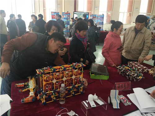 中教啟星展臺設(shè)在石家莊市青少年社會綜合實踐學校一樓的多功能廳,位于會場主出入口,占地面積達200余平,分為創(chuàng)客區(qū)、科技區(qū)、傳統(tǒng)文化區(qū)和虛擬現(xiàn)實展區(qū),是參展企業(yè)中規(guī)模最大、內(nèi)容最全、展品最多的。