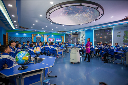 中教啟星“寰宇地理VR教學系統”依托桌面級便攜式一體化虛擬現實設備,深度集成VR、AR、MR等多種新興技術,將地球和地圖、陸地和海洋、天氣與氣候、人口與宗教、國家和地區等中學地理課程的教學難點直觀、全景、高清地呈現出來,讓學生在游戲和探索中深度吸收轉化學科知識。整套系統簡易輕便、無眩暈感,兼顧人機交互、師生教學和生生互動,徹底打破虛擬和現實的邊界,是VR軟硬件技術在地理學科教育的創新性應用,更是一間便攜的學科實驗室、一座移動的科技館。