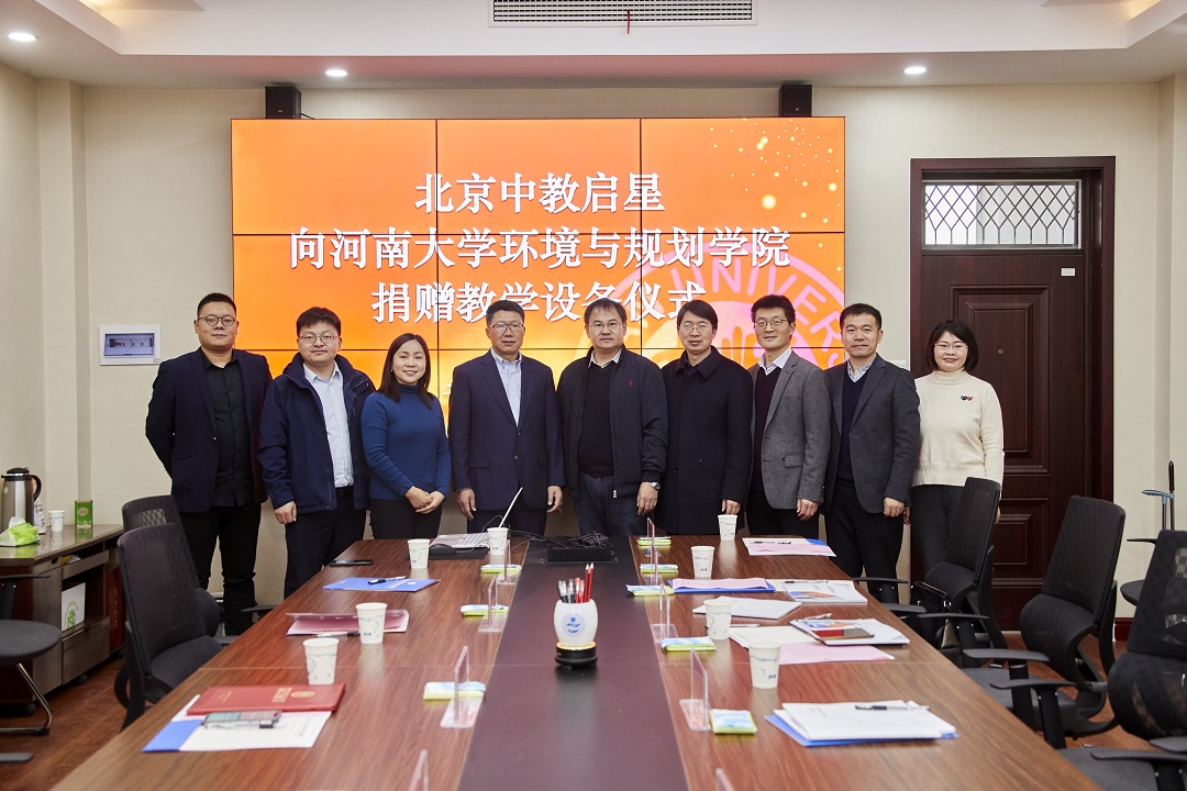 12月2日,在八朝古都開(kāi)封,中教啟星向河南大學(xué)環(huán)境與規(guī)劃學(xué)院捐贈(zèng)教學(xué)設(shè)備儀式在該學(xué)院舉行,中教啟星總裁王天祥,教研中心總監(jiān)王秋平,渠道部總監(jiān)馬爭(zhēng)科,河南省銷售負(fù)責(zé)人楊秉奮,河南大學(xué)環(huán)境與規(guī)劃學(xué)院黨委書(shū)記鄭洪濤,執(zhí)行院長(zhǎng)、黨委副書(shū)記喬家君黨委副書(shū)記徐小軍,副院長(zhǎng)潘少奇,地理科學(xué)系教師張廣花等領(lǐng)導(dǎo)出席了本次捐贈(zèng)儀式。