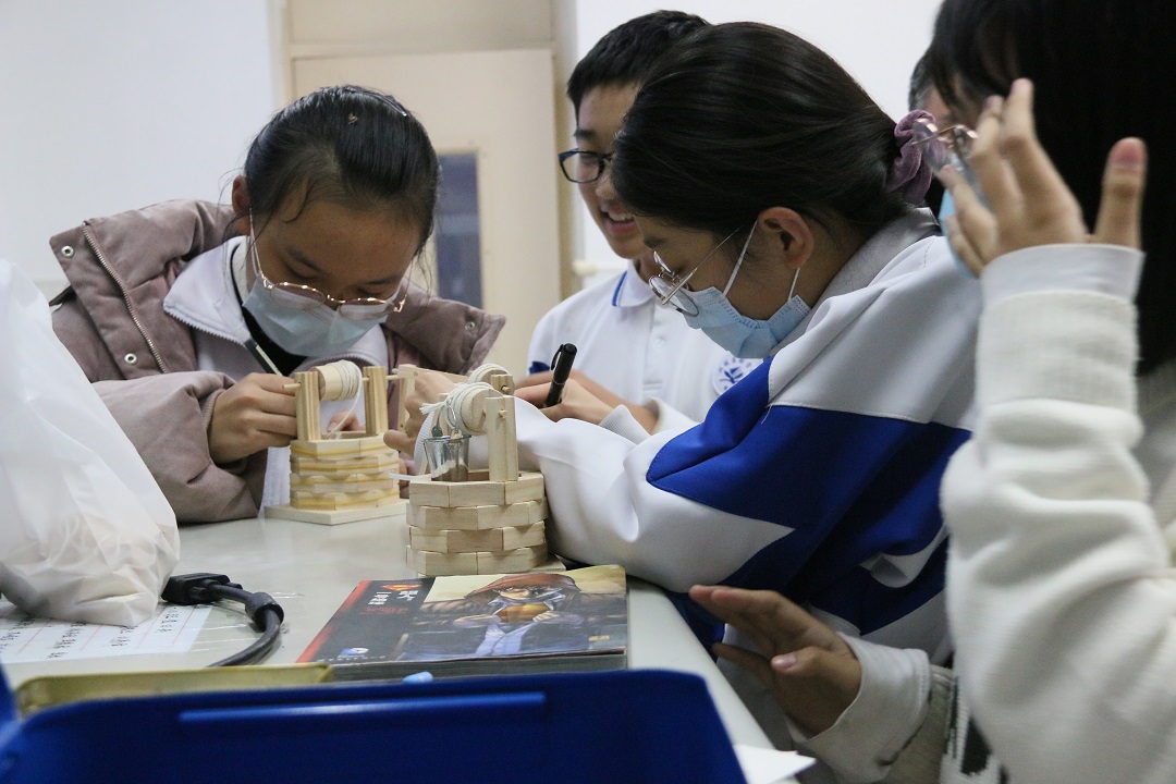 整個課堂過程,既需要同學們拿出耐心來操作,還考驗了團隊協作的能力。最后,課堂在一座座手工制作的轆轤井中畫上了圓滿的句號,同學們在學到知識的同時,還能親手制作迷你簡易的轆轤井,感受古人造井取水的智慧,相信這樣的課堂能讓他們學習到勞動人們的精神,未來也能通過自身的勞動創造更好的能推動時代發展的工具。