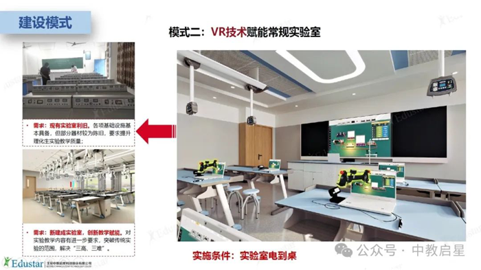 該模式通過引入VR技術,補充和提升傳統理化生實驗室的信息化水平,使傳統實驗室具備更先進的實驗演示和互動功能,增強學生的實驗體驗和學習效果。