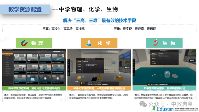 在教學資源配置方面,中教啟星展現出了強大的資源整合和創新能力。其解決方案覆蓋了國家課標同步學科資源,涵蓋小學科學及拓展資源,中學物理、化學、生物、地理、歷史等學科,為各學科的科學教育提供了全面而系統的支持。