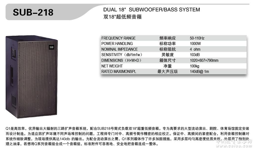 產品詳細介紹Q1是高效率,優異輸出大輻射的三路擴聲音箱系統,配合SUB218號筒式負載雙18超重低頻音箱。專為高要求的大型流動流出、劇院、體育場固定安裝而設計制造。為適應因擴聲環境不同聲場難控制的問題,工程師專門對中、高頻號筒作精密的相應校正。保證中、高頻間的緊密配合,利用音箱控制器對系統作細致調整,為現場提供高達140DB的輸出。為配合流動流出之需,Q1系統箱體作了許多加固措施,采用多層均勻高密度優質夾板,外層用了特別處理之油漆,若想將Q系統音箱組合成一個音箱組,標準附件可容易地、安全地時箱連成一整體。 |