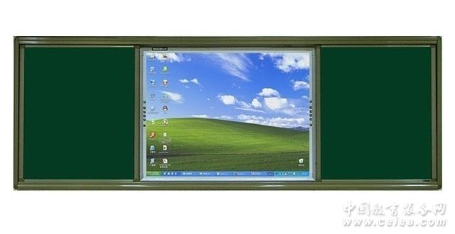 1、內軌裝置:電子白板置于軌道左側,右邊平行安裝一塊綠板。