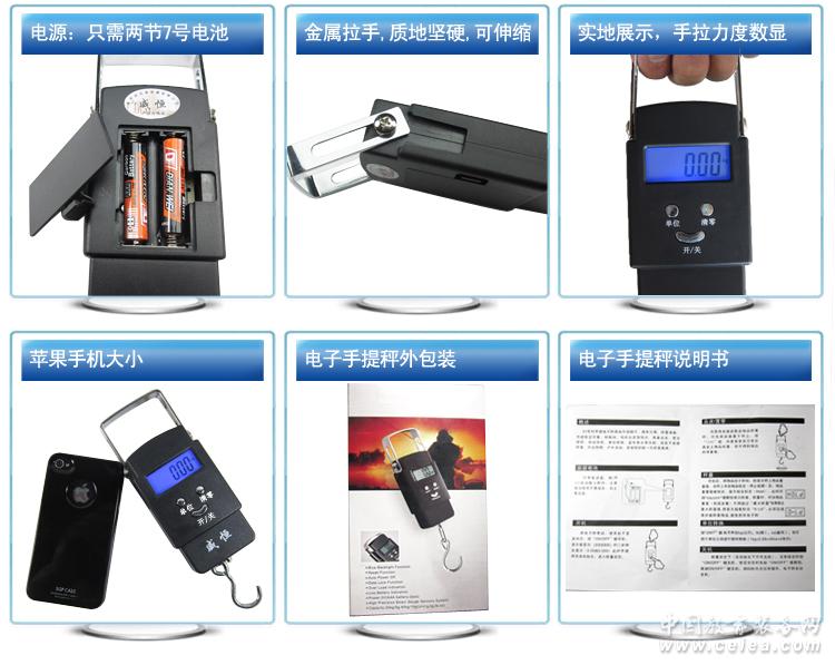 【產(chǎn)品配件】手提秤1個,七號電池2塊、中文說明書1張,合格證1張附秤體上