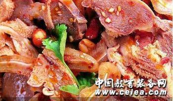 成都地區(qū)人人皆知的一款風(fēng)味名菜。相傳在30年代,成都少城附近,有一男子名郭朝華,與其妻一道以制售涼拌牛肺片為業(yè),他們夫妻倆親自操作,走街串巷,提籃叫賣。由于他們經(jīng)營的涼拌肺片制作精細(xì),風(fēng)味獨(dú)特,深受人們喜愛。為區(qū)別一般肺片攤店,人們稱他們?yōu)椤胺蚱薹纹薄?