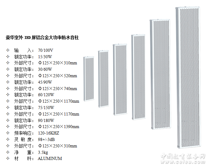 數字解碼終端與音柱一體功能,鋁合金防水防銹外殼結構;