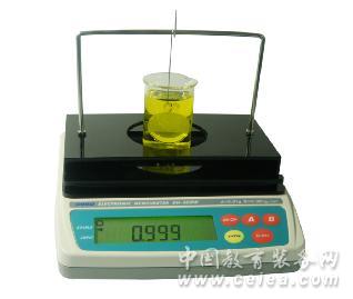 主要功能與特點(diǎn): 任何溶液皆可快速測量 助焊劑、膠狀體、油性體、原油類等相似狀態(tài)產(chǎn)品皆可測量 數(shù)字顯示、測量精度高、操作簡便、穩(wěn)定耐用 可測量常溫至100℃溫度狀態(tài)下的樣品密度值 取樣方便,所測樣品只需50CC 沒有韋氏天平法、比重瓶法煩瑣的調(diào)試與操作 可配合恒溫水槽作業(yè)、測量所需溫度的液體比重 測量杯容易清洗,不受比重瓶口徑小的限制,可重復(fù)使用。同時(shí)也可使用一次性測量杯 揮發(fā)性液體、腐蝕性液體、粘稠性液體、強(qiáng)酸強(qiáng)堿性液體皆可快速測量(選購相關(guān)配件) 含RS-232C通信接口,方便連接PC與打印機(jī),可選購DE-40打印機(jī)打印測量數(shù)據(jù) 配置專用防風(fēng)防塵罩,組合方便、堅(jiān)固耐用 測量步驟: ①將盛有樣品的測量杯放于測量放置板上,扣除掛鉤的重量。 ②用掛鉤將標(biāo)準(zhǔn)砝碼懸掛并完全浸沒在待測液體中,顯示密度值。