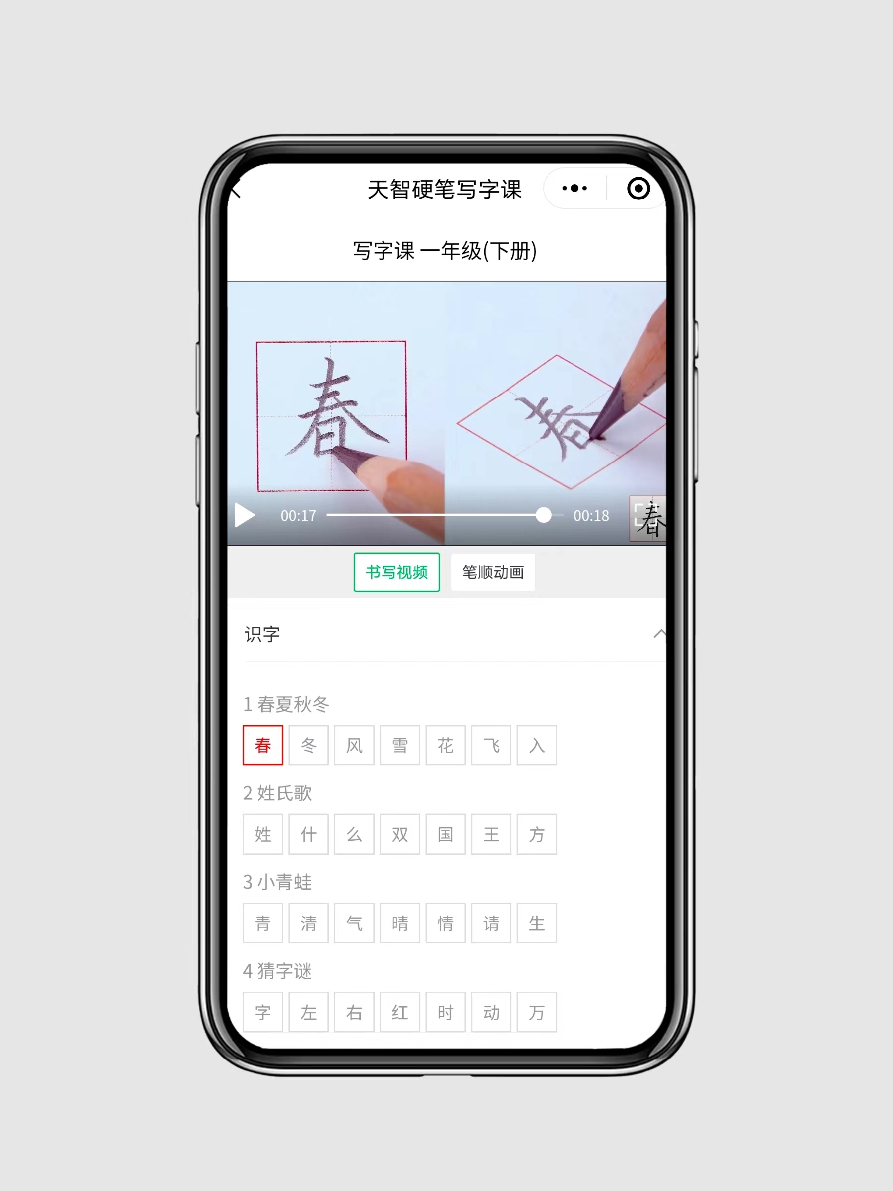 同時書本中還有小程序,在寫字練習的時候,手機微信掃碼可隨時查看范字視頻,及時糾正寫字問題。聽寫音頻也可減輕家長壓力,學生使用小程序便可進行聽寫練習并對照答案自行檢查,更便捷、更高效!