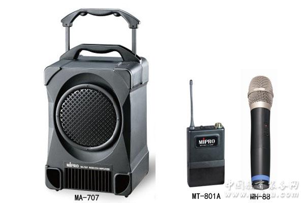 產品詳細介紹主要特點: 1、擁有100W高傳真、高效率功率輸出,驅動高效率全音域喇叭,聲音清晰強勁! 2、專利的獨特工藝造型,擴充配件模塊化,可快速拆裝更換。 3、貼心設計,首創一體成型的伸縮拖拉把柄及滑輪設計,可以拉著它走到哪里使用到哪里! 4、具有腳架底座可以固定裝置在三腳架上使用,隱藏式麥克風收納盒,便于麥克風的收納。 5、可同時使用有線、無線麥克風及CD放音機等音源混合擴音。 6、內建首創的隱藏式高感度天線,增加接受距離、穩定度及抗干擾特性。 7、機箱內建AC交換式電源供應器,可插接世界各種電壓不必切換,可同時提供擴音機的電源及電池的快速充電,可一邊充電一邊使用,停電照常全功能動作。 8、適合多元化高機動性的應用。