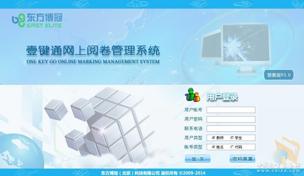 產品詳細介紹一、公司概況 東方博冠(北京)科技有限公司是一家穩步成長型的高科技公司,公司管理層由IT及教育界資深人士構成,公司以“融東方智慧,博行業桂冠”為發展目標,以“客戶滿意,實現客戶夢想”為經營宗旨,專注于數字校園領域的軟件研發、應用及推廣,并依靠點點滴滴、鍥而不舍的艱苦追求,使我們成為數字校園領域的探索者與領航者。 公司依托北京航空航天大學計算機學院的技術優勢,總部位于北京,在西安、烏魯木齊等多個城市設有辦事處,公司目前擁有員工80多人,80%以上是碩士研究生學歷,并聘請北京航空航天大學、西安交通大學的多位專家作為公司技術顧問。 公司秉承“軟件即服務”的服務宗旨,不斷創新,把客戶的需求放在首位,把對客戶的應用保障放在首位,您的滿意將是我們持續發展的源動力。 二、產品介紹 2.1壹鍵通數字校園綜合管理平臺 壹鍵通數字校園綜合管理平臺以規范教育信息,簡化日常管理方法,提高管理和信息使用效率,減輕管理教職工的工作強度,降低管理成本為設計目標,通過教育信息化引領教育現代化,推進信息技術在教學和管理中的應用,不斷建設和完善數字化校園,壯大教育信息化骨干力量,整體提高全校師資隊伍教育信息化水平,全面實施現代化優質教育。本平臺其中涵蓋了管理信息化、教學信息化、辦公自動化、保障信息化、資源共建共享五個方面: 2.1.1管理信息化 管理信息化程度代表著教育管理的現代化水平,通過人事、學籍、預約、文件、在線調查、在線評價等信息化應用,實現學校各項管理工作的信息化,從而加速教育現代化的進程。 2.1.2教學信息化 教學信息化涵蓋新課改、學生素質評價、教學質量分析、試卷分析四個方面,其中信息技術為新課改與學生素質評價的順利進行提供了有力支持與保障,而通過對考試成績的從年級、班級、教師、學生、試卷等不同角度的統計分析,實現教學科學管理,對于提升教學質量、整體管理水平和工作效率有非常重要的意義。 2.1.3辦公自動化 辦公自動化是采用Internet/Intranet技術,以通知、消息、日程、待辦事宜、便簽本、通訊錄等工具為基礎,使學校教職工方便快捷地共享信息,高效地協同工作;改變過去復雜、低效的手工辦公方式,實現迅速、全方位的信息采集、信息處理,為學校的管理和決策提供科學的依據。 2.1.4保障信息化 保障信息化為學校發展保駕護航,通過實現對設備、易耗品(辦公用品、清潔用品、維修用品)、車輛、計量收費、在線報修、職工宿舍、學生公寓、圖書、工資等方面的網絡化、信息化管理,為管理人員提供了簡便、快捷的網絡化管理服務,更好的服務學校教育教學。 2.2壹鍵通網上閱卷管理系統 網上閱卷是以電子掃描技術和網絡技術為依托,實現客觀題自動閱卷,主觀題網上評卷的一種現代閱卷方式,既提高了閱卷質量,也提升了閱卷的工作效率。采用網上閱卷進行考試閱卷與統計分析,不但免去了評卷教師對紙質答卷的整理、翻閱、成績計算、成績登記以及成績統計分析等人工操作,也免除了人工流水線閱卷產生的中間等待和誤差。 網上閱卷首先要求設計并印制試卷,考試結束后,再通過高速掃描儀對考生答卷進行掃描,生成圖像文件,存儲在計算機里。對生成的圖像文件通過軟件程序自動進行切割,客觀題由計算機自動閱卷,主觀題由計算機將各題組數據隨機生成發送給閱卷教師的計算機終端,由閱卷教師通過計算機終端進行閱卷。客觀題和主觀題閱卷完畢,由計算機自動匯總生成考生的考試成績和分析數據。 壹鍵通網上閱卷管理系統是東方博冠在多年教育信息化產品開發的經驗基礎上,結合目前閱卷管理工作中存在的問題,將高速掃描技術、圖像切割技術、圖像識別技術和網絡技術引進閱卷過程,以《教育測量學》、《教育統計學》和《教育評價學》為理論依據開發的計算機網上閱卷系統。系統具有高效、公正、準確等優勢,且操作簡便、快捷、統計分析功能強大,可以適用于各種類型考試網上閱卷工作。 公司網站:www.eastelite.com.cn 服務郵箱:[email protected] |