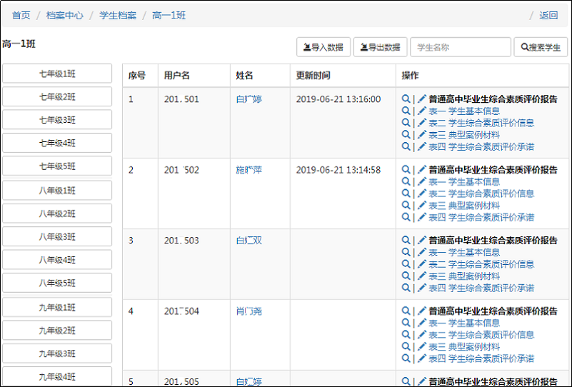e人e表檔案系統(tǒng)(又名“一人一表系統(tǒng)”)要從根本上解決人員檔案管理不通用的難題,系統(tǒng)憑借獨具特色的表單設計模型,定位為一款以“人”為中心的通用人員檔案系統(tǒng)。該系統(tǒng)成功整合了檔案定制、表單設計、記錄對象管理、數(shù)據(jù)源管理、統(tǒng)一輸入和輸出等多項技術,為學校和教育局提供了一個用途廣泛的可視化檔案管理解決方案。系統(tǒng)由制表、填表、報表三個子系統(tǒng)構成,可用于構建學生學籍管理系統(tǒng)、教職工檔案系統(tǒng)和學生綜合素質(zhì)評價系統(tǒng)等多種檔案管理系統(tǒng)。
