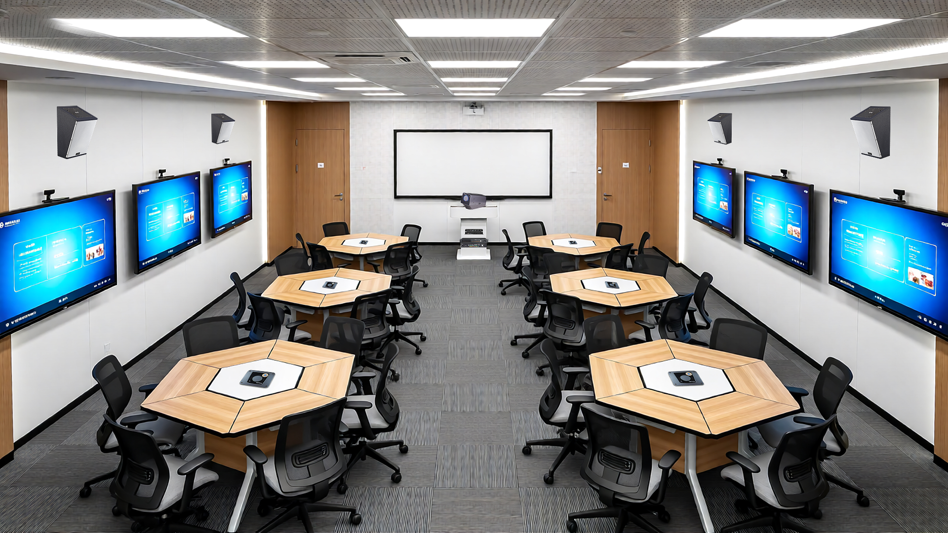 分布式無線話筒智能管家|分組研討型智慧教室場景一:設備裝在講臺機柜里