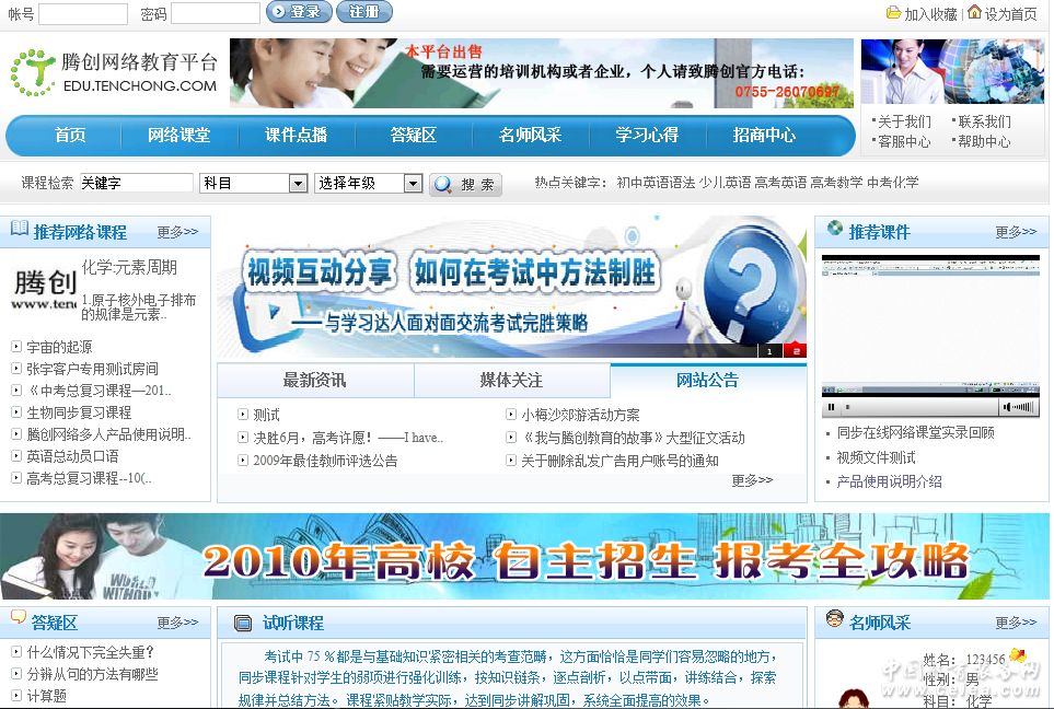 產品詳細介紹1.網頁的不用下載,直接打開方便快捷,而且避免用戶擔心安裝上有木馬或者病毒。 客戶端需要下載,速度慢,而且有可能存在病毒或者木馬,典型的例子就是360和qq等客戶端軟件掃描客戶端的文件和賬戶信息。而采用網頁版就不會存在這種情況, 現在qq等知名的應用軟件客戶端,也不斷的在開發網頁版本的了,如web.qq.com,基本都是以網頁版的為主了, 還有就是一些網頁上面的游戲的。這些是一個方向,云技術時代,客戶端的一些軟件應用,特別是不知名的客戶端將會逐漸被代替和沒落了。 2.強大的網站管理平臺,方便全球各地管理 3.產品可以跨平臺,不管是部署到window還是liunx操作系統服務器都可以。 大家都知道。一般服務器都是用linux更為穩定和安全,且并發數大。 4.產品終端跨平臺。只需要您通過瀏覽器,安裝了flash工具,99%以上的pc機器上都有安裝的了,就可以方便使用本產品。 5.支持電子白板,文檔(doc,pdf,ppt等)共享, 流媒體視頻點播共享等。 6.可以提供在線支付管理功能 7.系統不限制用戶數,一次購買,終身使用。 8.產品支持云技術部署,將不同的功能模塊協助部署到不同的服務器上面。高效完成用戶委托的任務。 9.產品對終端的硬件設備要求大眾化,兼容性強,普通的電腦攝像頭和麥克風就可以方便適用本產品。專業的攝像頭或者麥克風也可以兼容。 10.網絡占用帶寬小,一路視頻占用帶寬月30k左右,而且在占用帶寬小的情況下,視頻語音的流暢性相對來說比較優越。 11.支持噪聲消除、回音抑制、靜默音消除等聲音處理 12.我們提供的不僅僅是單一的網絡課堂或者視頻會議室,而是提供一整套平臺,包括點播,課程管理,學生,老師賬戶等,合適于運營在線網絡教學平臺。 13.平臺里面有2種模式,一種就是培訓模式,模擬老師在上面講課,學生在聽然后舉手發言的形式,另外一種就是討論模式,可以同事多人進行小組討論。 銷售咨詢qq:985477229 銷售電話:0755-26422671 地址:深圳市寶安新中心區華美居B區1號樓615 聯系人:彭小姐 |