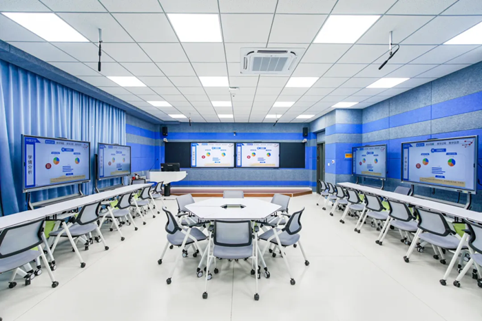 該類型教室主要采用海信雙拼電容智慧黑板搭配海信紅外一體機(jī)的組合,解決傳統(tǒng)教學(xué)研討模式單一,互動體驗(yàn)差等問題,實(shí)現(xiàn)師生互動、生生互動、實(shí)時(shí)互動,構(gòu)建了以學(xué)生為主導(dǎo)的小組研討教學(xué)解決方案。