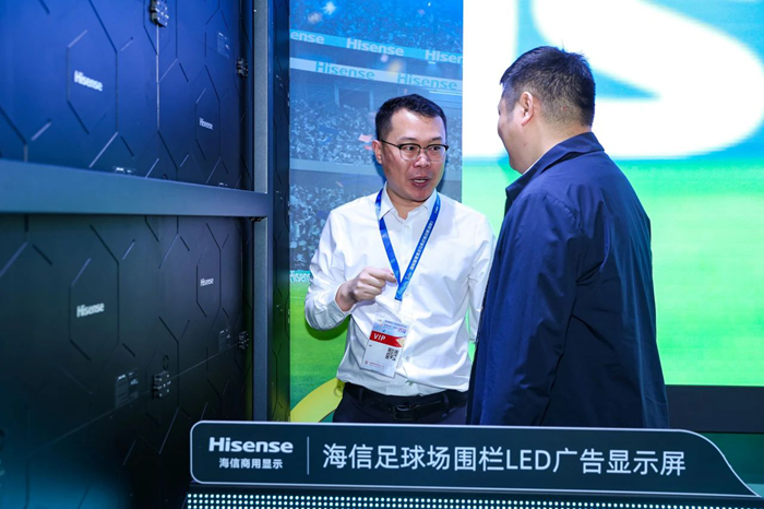 體育場場景則是還原了線下體育觀賽,通過“LED氛圍屏+SP系列圍欄屏”組合的方式,打造身臨其境的觀賽體驗。作為世界杯、歐洲杯等多屆世界大型體育賽事的贊助商,海信LED產(chǎn)品在全球多個大型專業(yè)足球場落地,為球迷打造更加沉浸式的觀賽體驗。另外,觀眾們還可近距離體驗海信多款小間距LED顯示屏,感受海信LED豐富的產(chǎn)品矩陣。