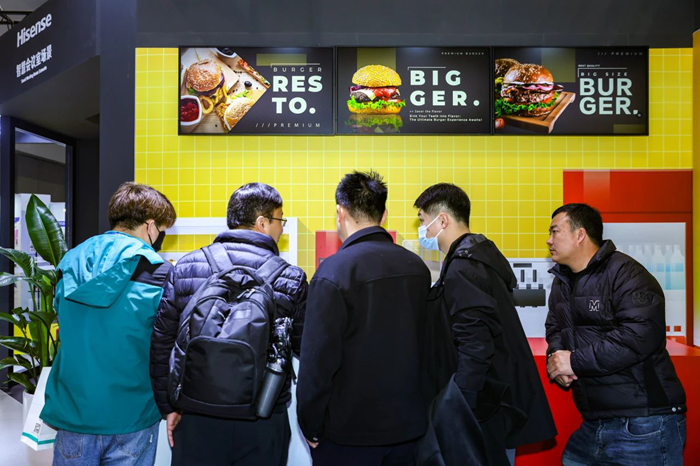 針對商業(yè)零售場景,海信商用顯示在現(xiàn)場搭建起汽車穿梭餐廳場景,室外區(qū)域采用戶外高亮Mini LED顯示屏,解決了傳統(tǒng)戶外液晶屏亮度不夠、對比度差、視角小、易黃化、壽命短、低溫下響應(yīng)速度慢等問題,可以更加清晰的展示廣告信息,清晰展示廣告信息,提升零售門店廣告信息的觸達率;在室內(nèi),采用3塊43英寸海信數(shù)字標牌產(chǎn)品,極窄邊框設(shè)計,美化門店形象,7*24小時的長時間穩(wěn)定運行能力,滿足門店的長時間運維。且具備網(wǎng)絡(luò)安全二級等保認證,避免網(wǎng)絡(luò)攻擊和非法投屏,保護商家利益。借助海信信發(fā)智控CMS系統(tǒng),實現(xiàn)各類零售場景的統(tǒng)一管理、統(tǒng)一運維,更能提升顧客體驗,吸引客流。