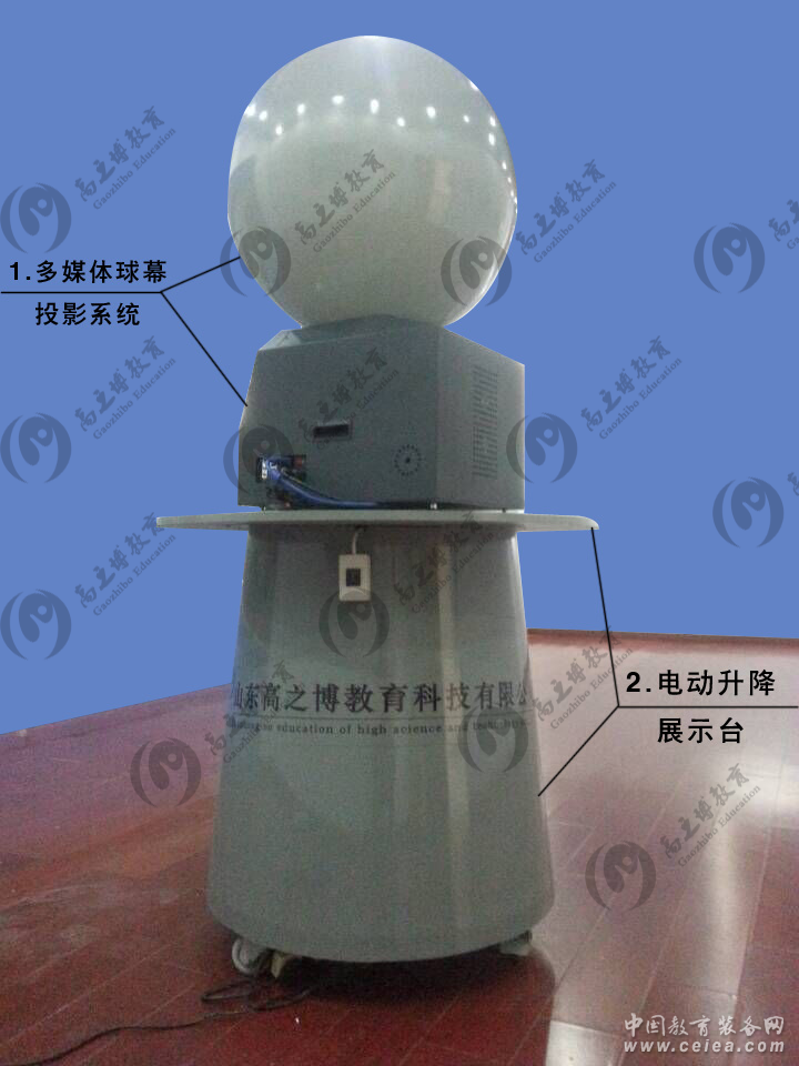 產品詳細介紹1.多媒體球幕投影演示系統,是高之博根據教育部最新頒布的裝備標準及新課程標準而自主研發的一款將計算機信息技術應用到初中、高中地理學教學中的一種現代化數字示教平臺。 2.它可分為兩個部分:①硬件系統:球型屏幕、魚眼鏡頭、投影機、遙控器等;②軟件系統:平臺軟件、配套新課標課程包和指導手冊。 多媒體球幕投影演示系統非常直觀形象、全方位的展示球體教學內容,既可以演示宇宙中各天體和星體(如:太陽系八大行星等),也可以演示地理知識(如:模擬海水抽干,氣壓帶分布、云系運動、麥哲倫航線、洋流等)。該產品完全改變了傳統模型教具的單一性及缺乏趣味性的互動演示模式,為師生互動教學增添新意,極大的滿足教學應用需要,大大提高了教學的效果與質量,使教學倍加輕松。另外,該產品還能與電子白板、數字立體地形、環幕示教系統、大屏幕液晶電視等多媒體設備無縫聯動對接,使產品教學應用市場的前景更為廣泛。 目前,多媒體球幕投影演示儀已列入教育部最新頒布的《中華人民共和國教育行業標準》 (編號JY28004) 政策及技術優勢 1、數字化地理專用教室和數字化科學教室的核心設備 2、專家聯手打造配套新課標課程,為教學設置二次開發平臺 3、列入最新頒布的《中華人民共和國教育行業標準》(編號:JY28004) 4、國際領先球面成像技術制造者 5、行業領先的高清高亮的多媒體球幕投影演示儀 6、全高清分辨率,清晰度是標清產品的2.4倍 7、特制全高清地理課件,顯示效果大大提升 資源中心包含了初高中新課標教學要求的所有課程素材以及部分拓展素材資源,每學期至少一次通過自主研發的資源更新平臺,為用戶平滑推送最新素材資源,同時也可實時在線自主下載所需資源。