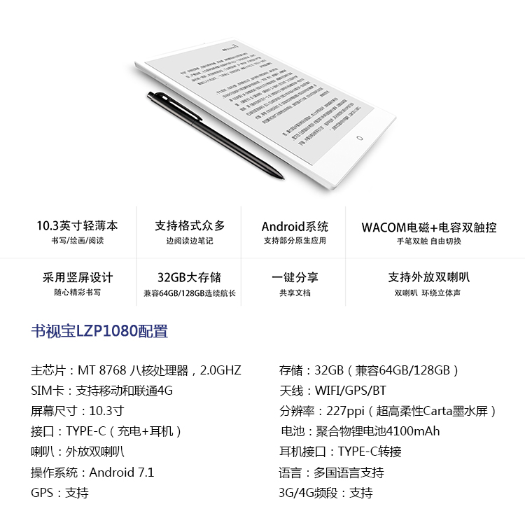 書(shū)視寶閱讀書(shū)寫(xiě)器電紙書(shū)LZP1080平板電腦