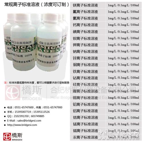產品詳細介紹橋斯氟 鈣 碘離子標液 鉀 鈉 汞離子標準溶液